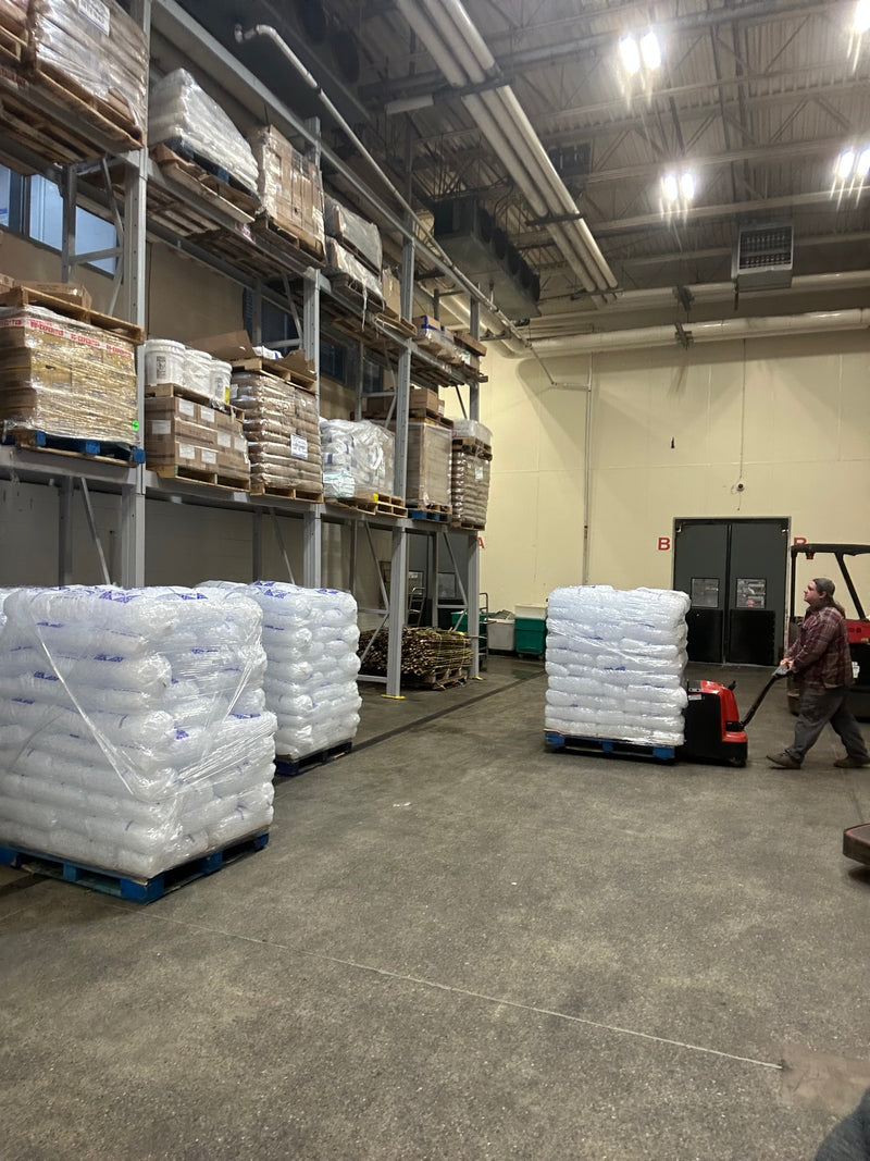 1 ton pallets: 100 twenty pound bags.